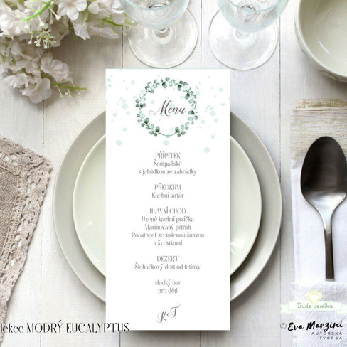 Moderní nordic styl kolekce svatebních oznámení Modrý eucalyptus navodí správnou zimní náladu., prolédněte si ji celou zde: https://www.budeveselka.cz/kolekce-modry-eucalyptus
